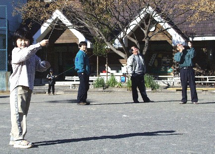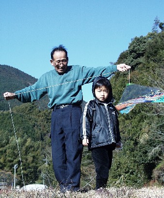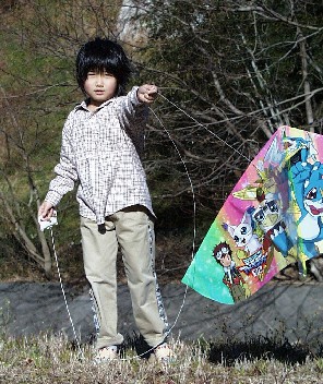 ![]() 公民館へ移動しての凧揚げ お兄ちゃん ちょっぴり元気がないのは花札のせい? 諒さんは悪戦苦闘中! |