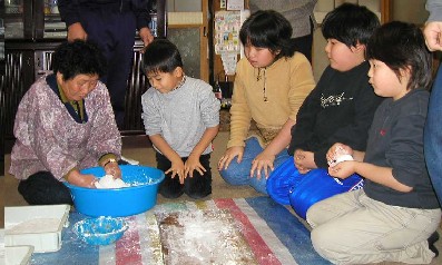 丸め方の指導を受ける子供達 ![]() |