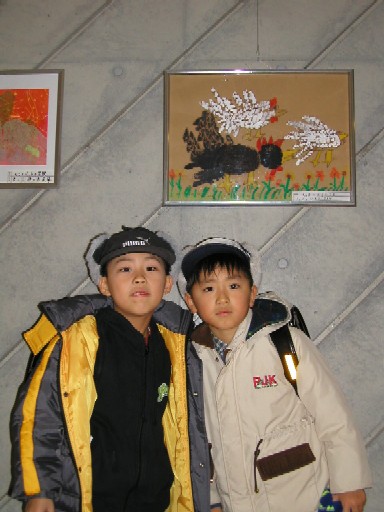 諒が描いたチャボの絵が廊下に額入りで掲示されてました。 隣は佐藤響くん。 ![]() |