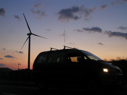 秋田の市民風車『天風丸』(天王町)の時と同様、早朝の取材となったが、幸いにも好天に恵まれ朝焼けに佇む芸術的(?)な写真を撮る事が出来ました。 本風力発電設備は、NPO法人によって2003年3月青森県鯵ヶ沢町に建設された国内2例目となる市民風車である。建設場所は鰺ヶ沢駅前から車で5分程の国101号線バイパス沿いの高台で、日本海から吹上げる季節風を真正面に受ける好条件の風力適地である。