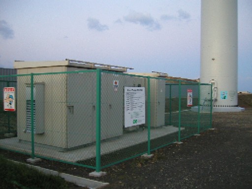 風車本体に併設された変電設備 ![]() |