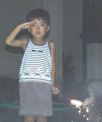 ![]() 得意のポーズ敬礼! 将来は白バイの運転手だっけ? |