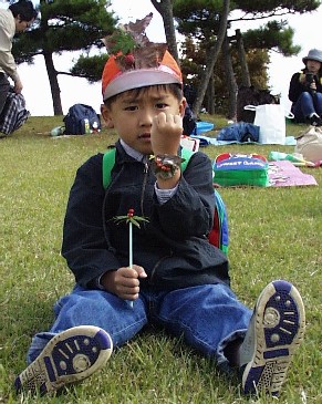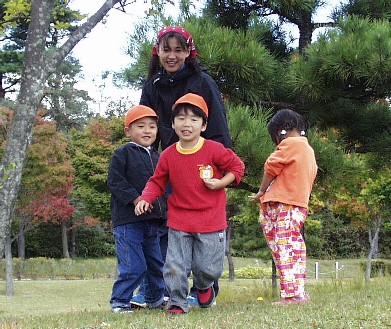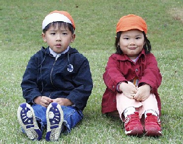 御所野幼稚園'00秋遠足(00/10/14) 秋晴れの天気の下、御所野幼稚園年中さんは秋田空港隣接の県立中央公園へ 遠足に出掛けました。広〜い運動場でゲームをしたり、みんなで輪になって お弁当を食べたり、思いっきり秋を満喫しました。