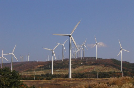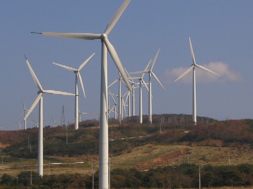 多分ここが日本で一番風車が込合っているサイトでしょう。場所は寒立馬で有名な下北半島の最東端尻屋崎がある東通村岩屋。風車が見通せる丘を登り風車群を目にした瞬間、その乱立ぶりと数の多さに初めて気持ち悪さと不気味さを覚えました。現在本サイトで稼動中の風車総数は56基で内訳は以下の通り。今後も増設の計画があるほど、風力発電の聖地である。