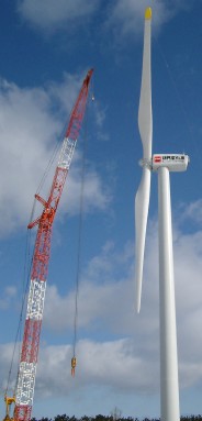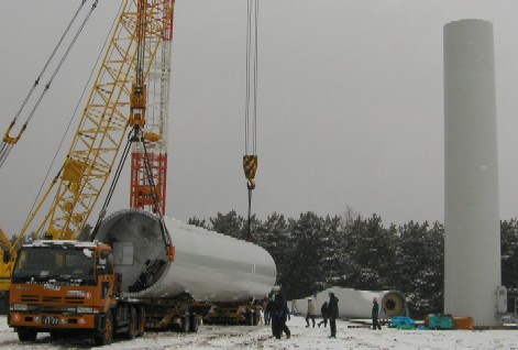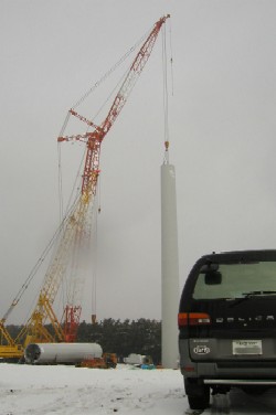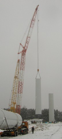 以下は2月26日撮影の工事写真 前日に設置された1本目に続き、本日は朝から2本目、3本目と接続し ナセルの取付けまでを予定しているとの事でした。 ![]() |