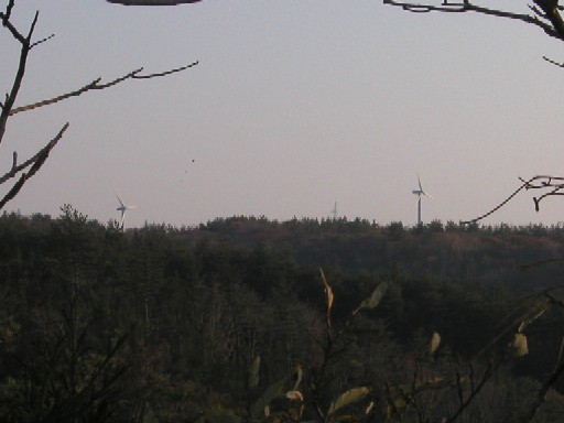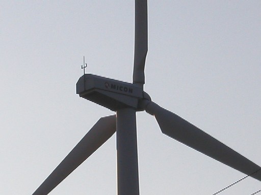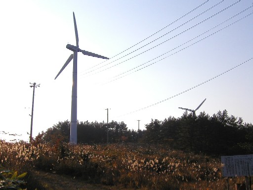 風力発電設備の多くはその姿が遠くから確認でき、風車の位置を確認しながら向かう道を探すケースが殆どであるが、今回その姿が確認出来なかった事から、施設に辿り着くには相当手間取ってしまった。やっと見付けた施設は、国279号線を北上、大湊線ありと駅を過ぎ数キロ進み、速度取締機の直ぐ先のT字路を右折すると右手にその姿がやっと見えてきます。本設備は、1998年1月に野辺地風量発電研究所が建設したNEG-Micon社製出力400kWの風力発電機2基である。残念ながら土地は地元業者の所有地らしく、立入りを厳しく禁ずる立て看板と鉄柵に阻まれ、近くに寄る事は出来なかったが、やっと辿り着いた風車に満足感一杯で帰れました。 | ||||||||||||||||||