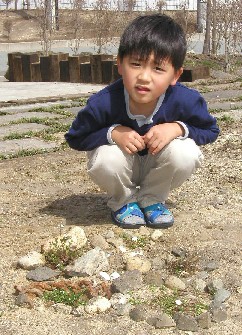 春休み中の4月3日 シャベル片手に一生懸命何してると思ったら 花が咲いた雑草でガーデニングだそうだ。 ![]() |