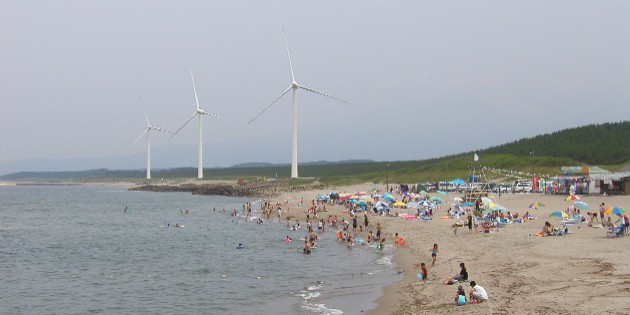 宮海海水浴場脇に建設が終わっている6〜8号機(手前より) 天気が良ければ鳥海山を背景に良い写真が撮れたのに… ![]() |