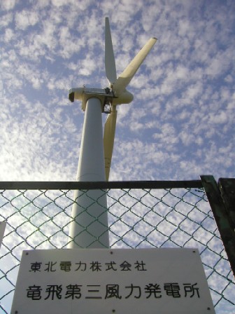 | 爽やかな秋晴れとなったこの日、東北いや日本の風力発電の草分け的存在である青森県竜飛崎の東北電力竜飛風力発電所を訪ねた。現在は全11台が北海道を見渡す景勝地に建設され元気に稼動している。 竜飛ウインドパークの概要 当社は地球環境に優しいエネルギーとして、風力、太陽光、地熱等の自然エネルギー利用の研究開発に取り組んでおります。当竜飛地区は、世界でも有数の好風況地であることから、ここにわが国では初めての大規模な風力発電基地(ウインドパーク)を当地に建設し本格的な風力発電実用化に向けての実証試験を行うことと致しました。尚、本ウインドパークの1号機は、通産省の地域エネルギー開発利用発電モデル事業として、国から本体部分について1/2の補助金を得ています。 1.設備概要