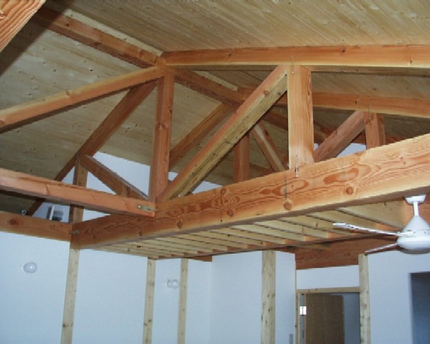 2F天井の構造物をむき出させた事により、開放感と空気の流動性を確保しています。 ![]() |